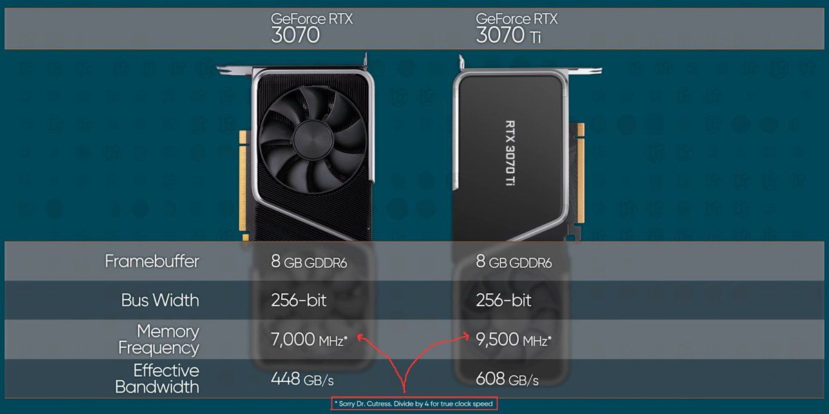 @IanCutress It seems that @LinusTech refuses to convert to the truth. He also seems to have forgotten that the 3070 is GDDR6 and not GDDR6X so it should be half but that's not the point. (Source: Latest 3070 Ti Video)