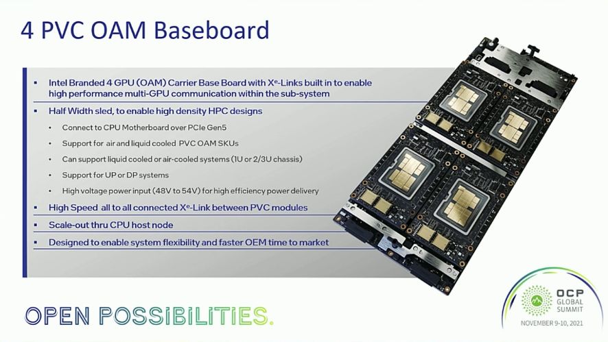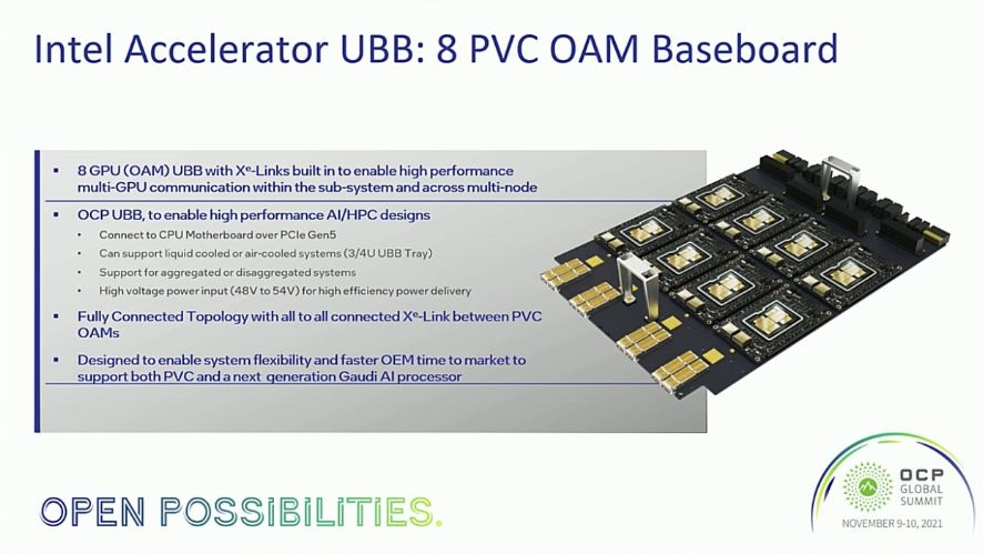 Intel Ponte Vecchio 4x and 8x Subsystems 4x: 1U Liquid, 2/3U Air 8x: 3/4U Air(/Liquid?) 8x Baseboard allows OEMs to develop next-gen Gaudi xPU systems more easily.