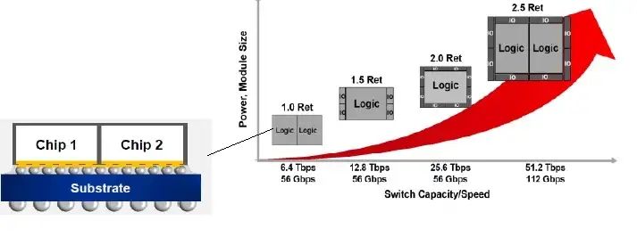 They expect future 51.2 Tbps Switches to be about 2.5x Reticle Limit, using 112G (PAM4) SerDes and multiple dies. Expected too, first ones on N5/N4 should arrive this year by my guess. (Probably Broadcom first) InFO-oS: