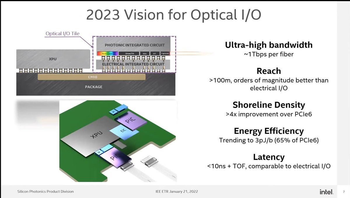 High Volume Silicon Photonics for Co-Packaged Optics and Optical I/O Thomas Liljeberg, Intel IEE ETR, 21/01/2022 youtu.be/eRbxZwQqlrw