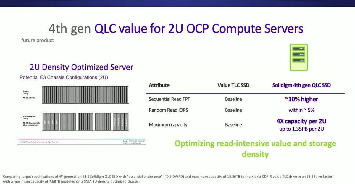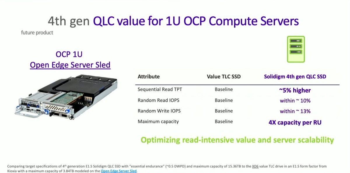 Solidigm 4th Generation 3D-NAND Claimed Value & Performance: Applications in Edge Server and Density Optimised Server Given Solidigm is trying to position itself as the "value-brand" of SK Hynix, this mostly makes sense.